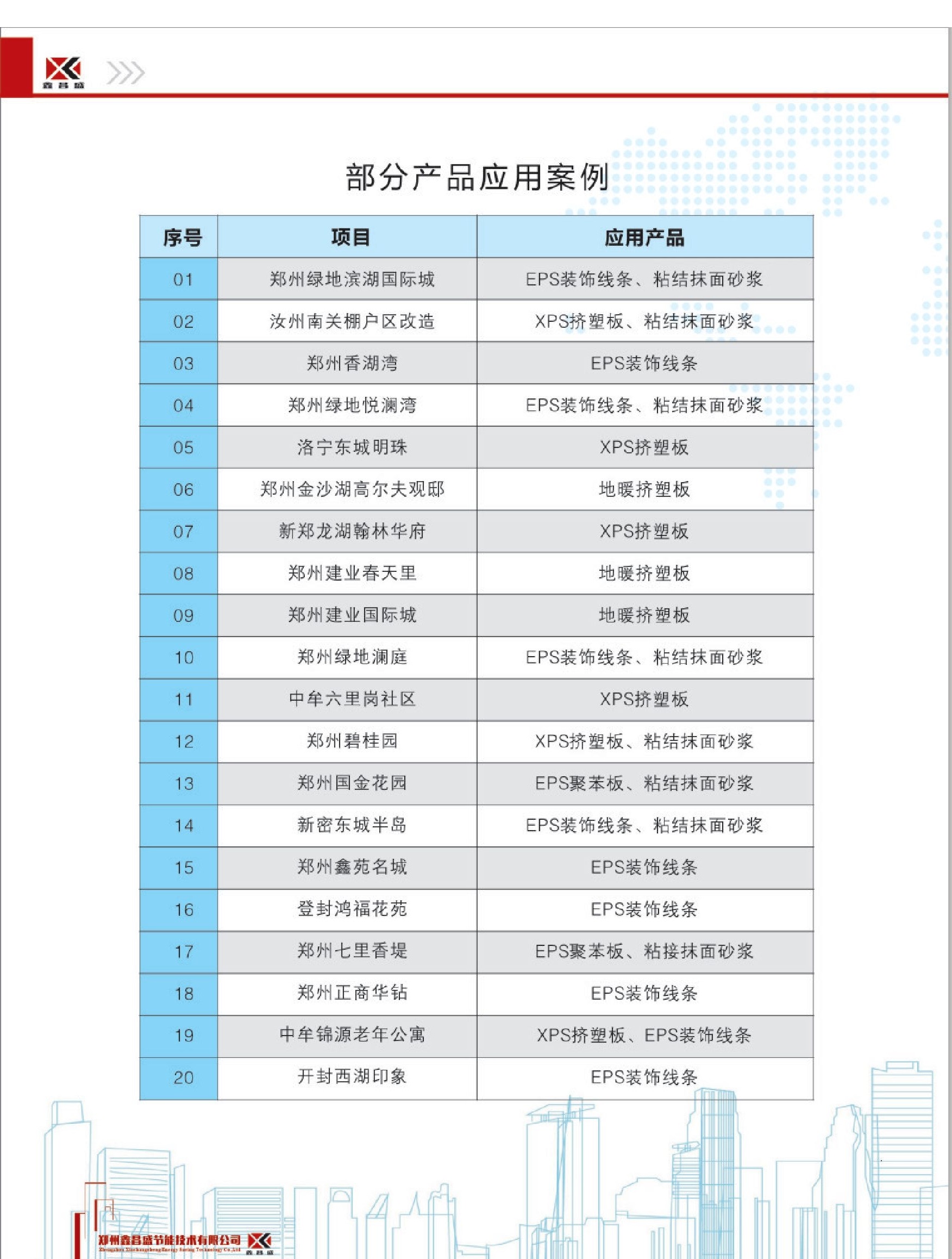 鄭州鑫昌盛節(jié)能技術(shù)有限公司是一家致力于研發(fā)及生產(chǎn)、應(yīng)用新型建筑墻體保溫材料的技術(shù)型企業(yè),是具有自主知識(shí)產(chǎn)權(quán)、技術(shù)優(yōu)勢(shì)明顯、產(chǎn)品品類(lèi)齊全、生產(chǎn)制造能力的新型建材企業(yè),專(zhuān)業(yè)為廣大客戶(hù)提供新型環(huán)保節(jié)能建材。公司主營(yíng)產(chǎn)品涵蓋外墻保溫體系相關(guān)的各類(lèi)產(chǎn)品:聚苯板、石墨板、泡沫板、外墻保溫板、粘結(jié)砂漿、抹面砂漿、保溫砂漿、eps板、eps線(xiàn)條、eps造型、eps構(gòu)件、eps裝飾線(xiàn)條、eps廠(chǎng)家、泡沫板廠(chǎng)家、河南線(xiàn)條廠(chǎng)家、河南保溫板廠(chǎng)家、河南eps線(xiàn)條、鄭州eps線(xiàn)條、鄭州泡沫板、外墻eps線(xiàn)條、外墻裝飾構(gòu)件、EPS造型裝飾線(xiàn)條、聚合物保溫粘接砂漿、聚合物抗裂抹面砂漿、EPS聚苯板、XPS擠塑板、巖棉板、熱固改性聚苯板(真金板)、發(fā)泡水泥防火隔離帶、網(wǎng)格布、保溫釘?shù)。公司加?qiáng)研發(fā)中心投入,多次參與循環(huán)節(jié)能學(xué)術(shù)與科技講座研討會(huì)的交流,在產(chǎn)品研發(fā)理念上加入了更多的發(fā)展技術(shù)理念,積極參與大型項(xiàng)目工程合作,取得良好聲譽(yù)。研發(fā)、信譽(yù)、團(tuán)隊(duì),始終是鄭州鑫昌盛節(jié)能技術(shù)有限公司的核心競(jìng)爭(zhēng)力。鄭州鑫昌盛節(jié)能技術(shù)有限公司,致力于為客戶(hù)提供保溫系統(tǒng)全面技術(shù)服務(wù)! |